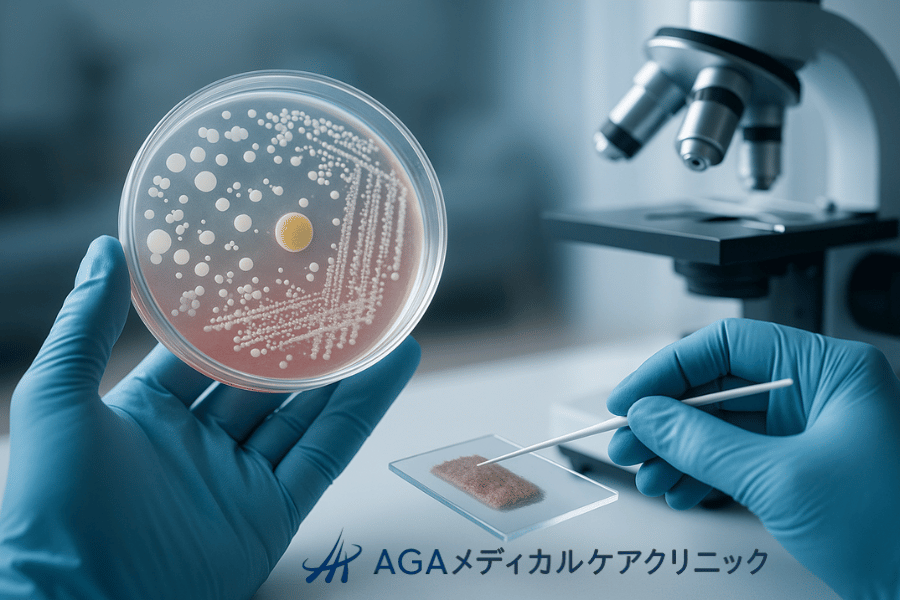 頭皮のかゆみやフケ、脱毛の原因が、カビの一種である真菌(しんきん)の感染による場合があります。真菌培養検査は、原因となる真菌の種類を特定し、確実な診断を下すために行います。
