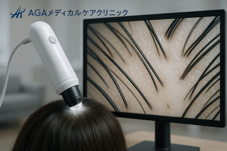 トリコスコピーは頭皮全体の環境や毛髪の密度、太さのばらつきなどを広範囲に評価するのに適しています。