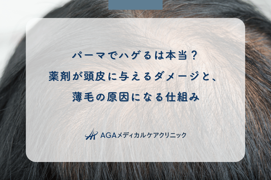 すでにAGAが進行している人が不適切なパーマで頭皮環境を悪化させると、薄毛の進行を早めてしまう懸念もあります。