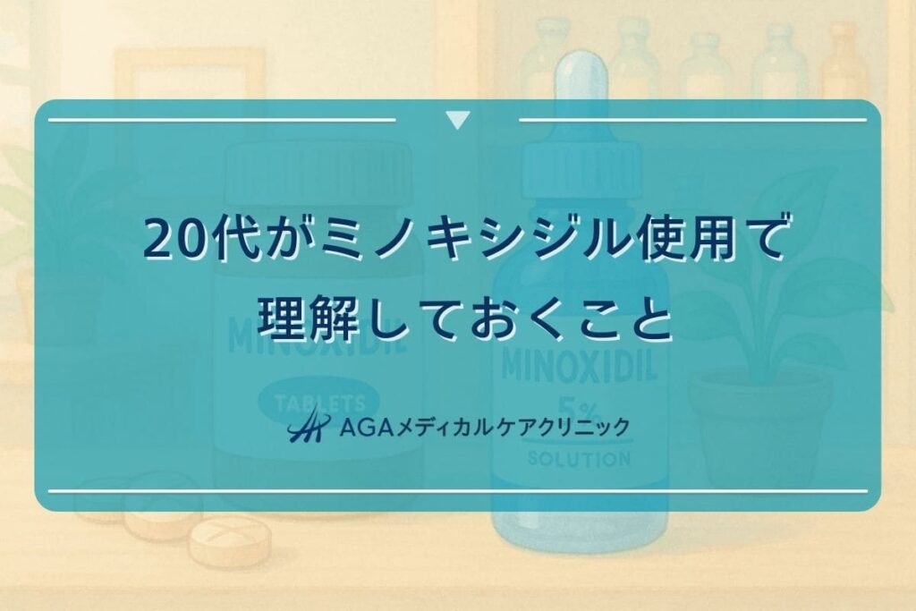 20代でミノキシジルや育毛剤の使用を考えていますか?この記事では、20代の薄毛の原因、ミノキシジルの正しい知識、メリットと副作用、そして自己判断のリスクを専門家が解説。AGAの早期治療の重要性を理解し、あなたに合ったケアを見つけましょう。 -