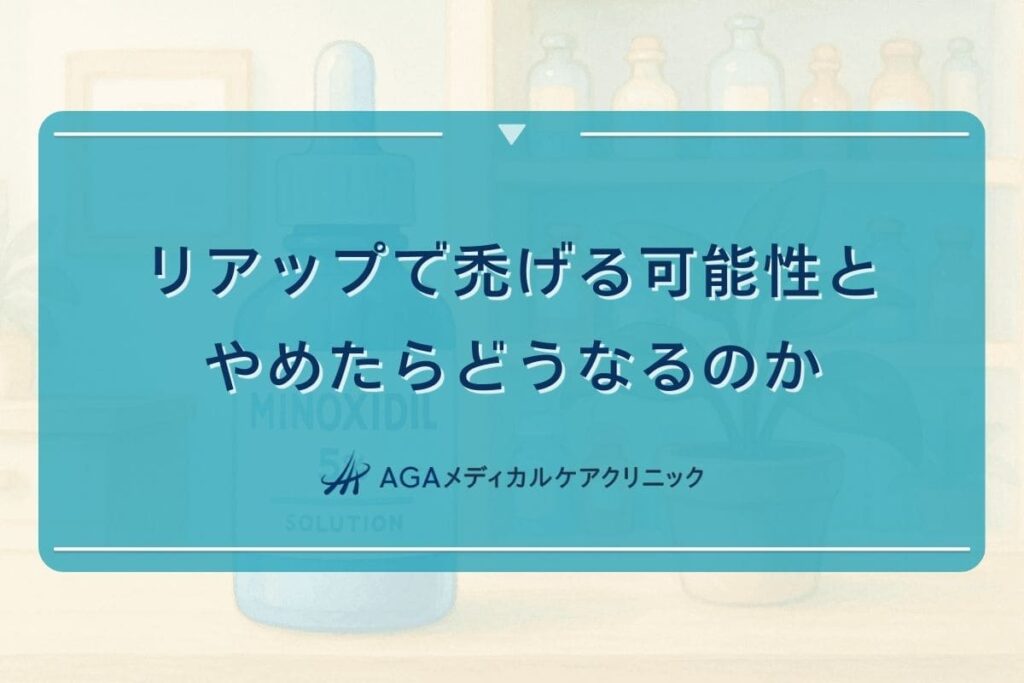 リアップでハゲるは本当?その原因「初期脱毛」と、使用をやめたらどうなるかを専門家が解説。抜け毛が増える仕組みや期間、中止後の髪の変化を詳しく紹介します。自己判断でやめる前に知ってほしい、後悔しないための選択肢がここにあります。 -