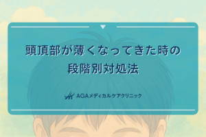 | 中期 | 頭頂部の地肌が透けて見える | 根気強い治療の継続が必要。 |