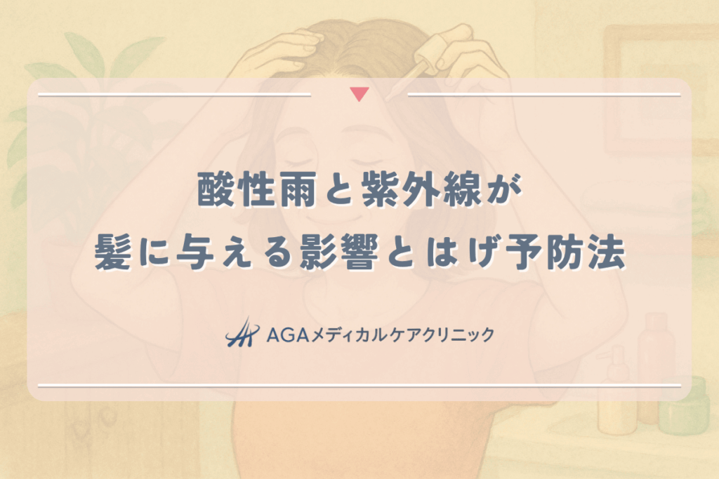 酸性雨と紫外線が女性の髪に与える影響とはげ予防法酸性雨や紫外線で髪が傷み、薄毛が心配な女性へ。この記事では、酸性雨と紫外線が髪に与えるダメージの仕組みから、日常でできる具体的な予防法や食事で気を付ける点、専門クリニックでの治療法までを詳しく解説しています。