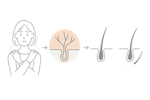 エストロゲンが持つコラーゲン生成促進作用が弱まると頭皮が乾燥しやすくなり、健康な髪を育む土台が揺らぎます。