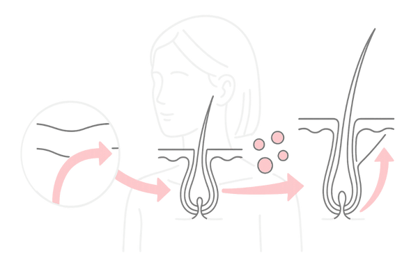 この血流増加により、髪の成長に必要な栄養素や酸素が毛母細胞へ十分に供給され、毛母細胞の働きが活発になります。